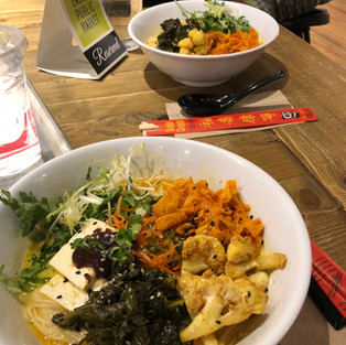 Mr. Lee's Noodle House, located within the Easton Public Market offers a rotating vegan option (order without egg) that will blow your mind. this is so much more than soup. Complex flavors and substantial ingredients such as mock bacon, tofu, and veggies give the ramen a flavor profile that feels like you ate a 10-course meal. They also offer a vegan dessert!
